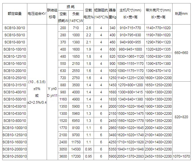 SCB10環(huán)氧樹脂干式系列(10KV級)技能數據技能數據