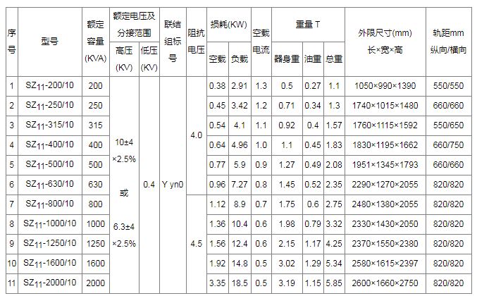SZ11有載調(diào)壓系列(10KV級)技術數(shù)據(jù)